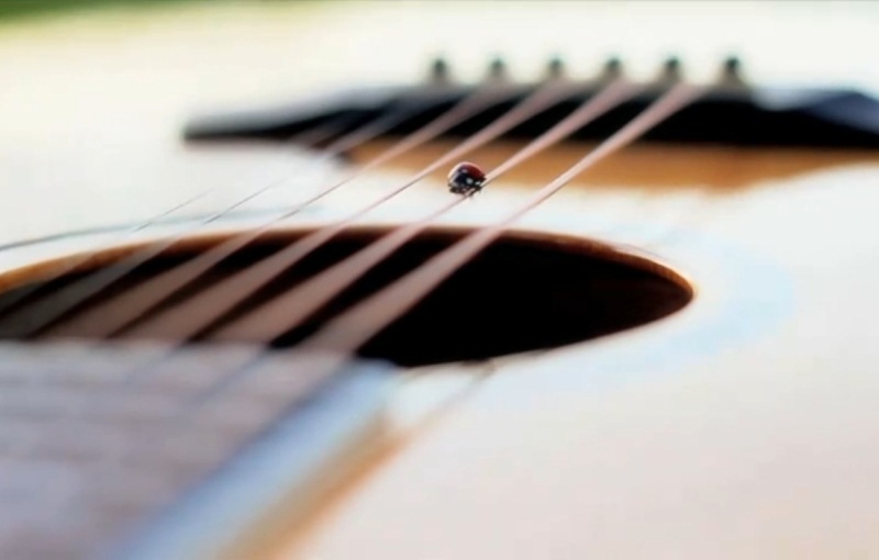 Quant aux vibrations musicales, il y a différentes manières de faire vibrer/résonner un instrument à cordes sans le toucher. Suffit que le gamin, ou le tonton, connaisse un truc.
